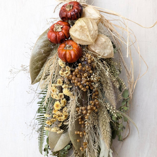 | 商品の特徴 | 38㎝ パンパスグラスとススキの秋のリース ドライアンドラ ソラナム。38㎝ パンパスグラスとススキの秋のリース ドライアンドラ ソラナム。38㎝ パンパスグラスとススキの秋のリース ドライアンドラ ソラナム。たっぷりのパンパスグラスとススキに、グレビレア、おたふく南天、ドライアンドラ、ソラナムパンプキン、ハイブリッドスターチス、実物などを彩った秋のリースです^_^ススキの葉っぱのくるくるで遊び心出してます♡サイズ 直径約38㎝ 厚み約13㎝ボリュームたっぷり!ドアなどにも存在感ありです♪サイズ表記は作成時(10/2)の、葉っぱの遊びの部分やつるを含めての計測です。(このリースはドライのものを多く使っています)大きめなので佐川急便/日本郵便で発送します。繊細なドライフラワーとハンドメイドにご理解ある方よろしくお願いします。38㎝ パンパスグラスとススキの秋のリース ドライアンドラ ソラナム。ドライになると若干縮みますのでご了承ください。オーレアミモザの蕾とイエローのリース 春 クラスペディア アリッサム。感謝SALE!オーレアミモザとプルモサムのフライングリース ビオラ。ですので到着も早い!自然素材を使用しておりますので、輸送中などに葉や実が落ちることもありますこと、あらかじめご了承下さい。ミモザたっぷり⋆︎*ドライフラワー春リース。大きなミモザとピンクのオーバルリース イタリア産ミランドール スターチス 春。 | ||